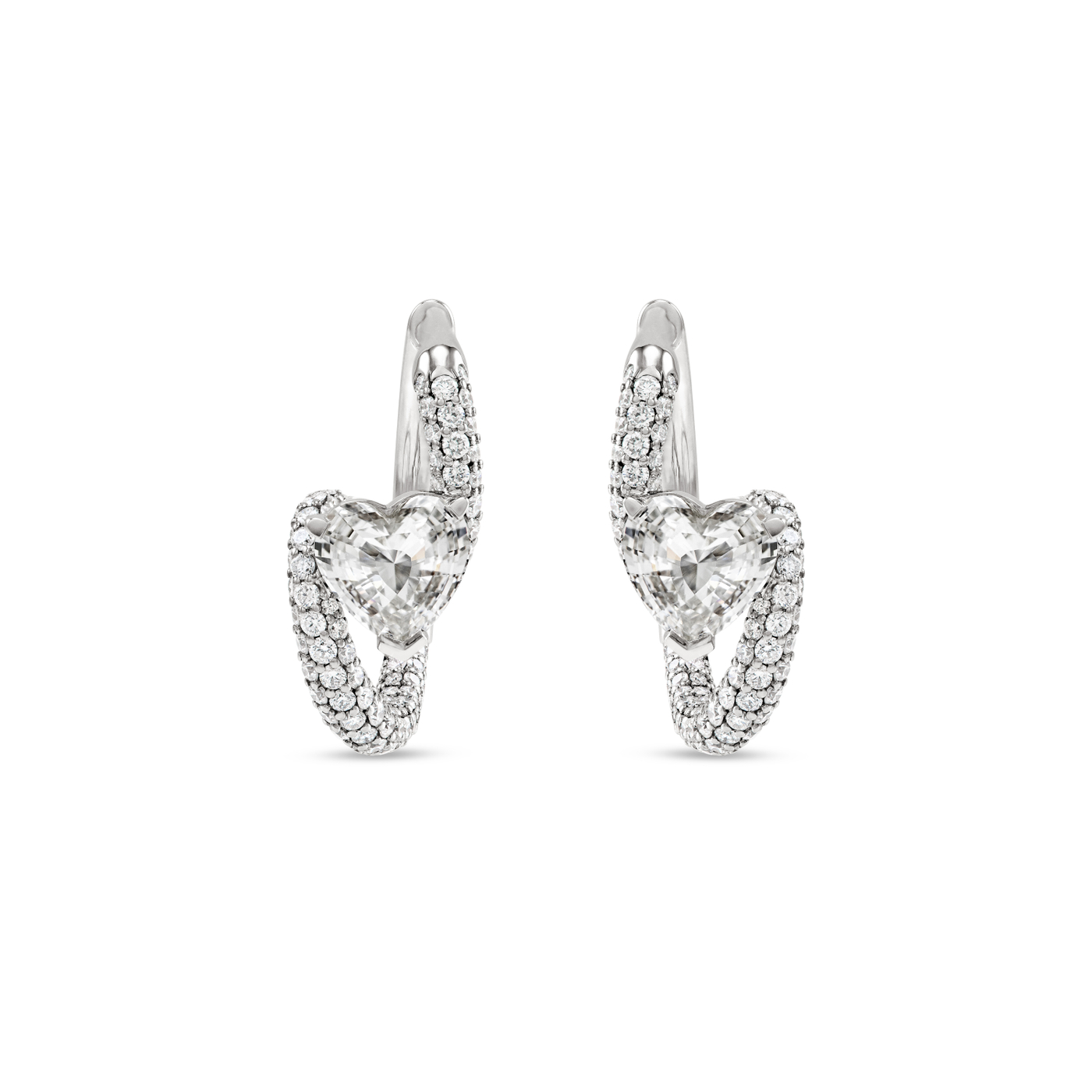 Créoles en or 18 carats recyclé, serties de diamants de synthèse en micro-pavé et de la taille Whirlwind Heart brevetée.