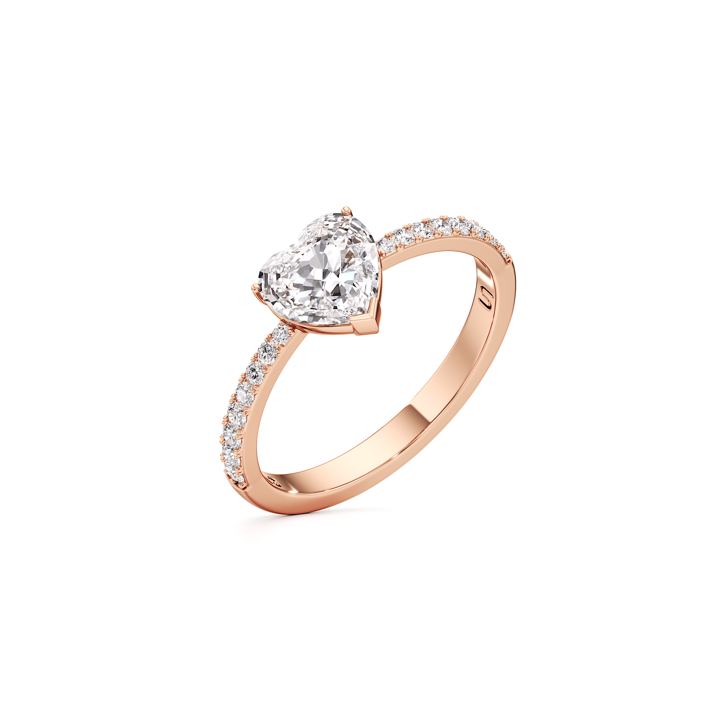 Solitaire en or recyclé 18 carats, façonné à la main et serti d’un petit diamant de synthèse de synthèse en forme de cœur.