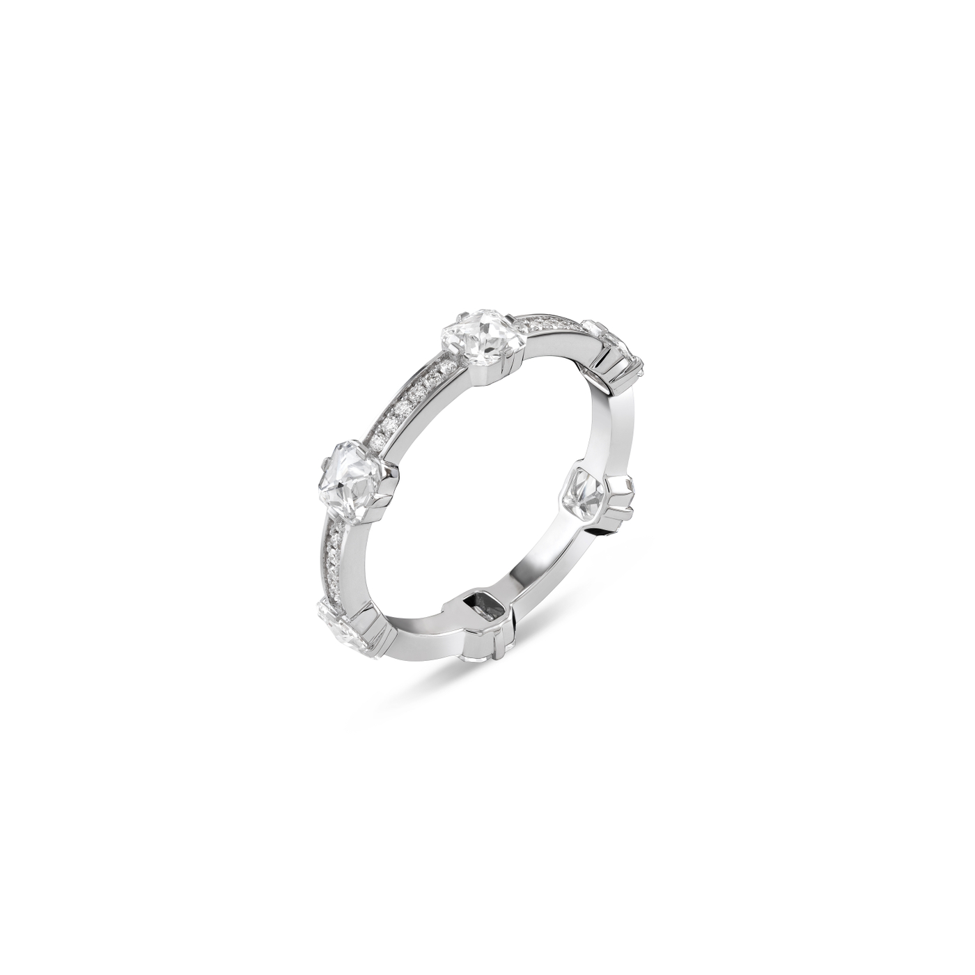 The Armor Diamond Stackable Band showcases the Armor Square diamonds handcrafted by our master artisans to reflect 32 brilliant facets, complemented by pavé-set diamonds. Set in luminous 18K recycled gold, this diamond ring symbolizes a silent promise of love that is fierce, fearless, and unwavering. All Unsaid jewels are handcrafted from lab-grown diamonds and 18K recycled gold. Powered by renewable energy, our methods and materials are certified carbon neutral.