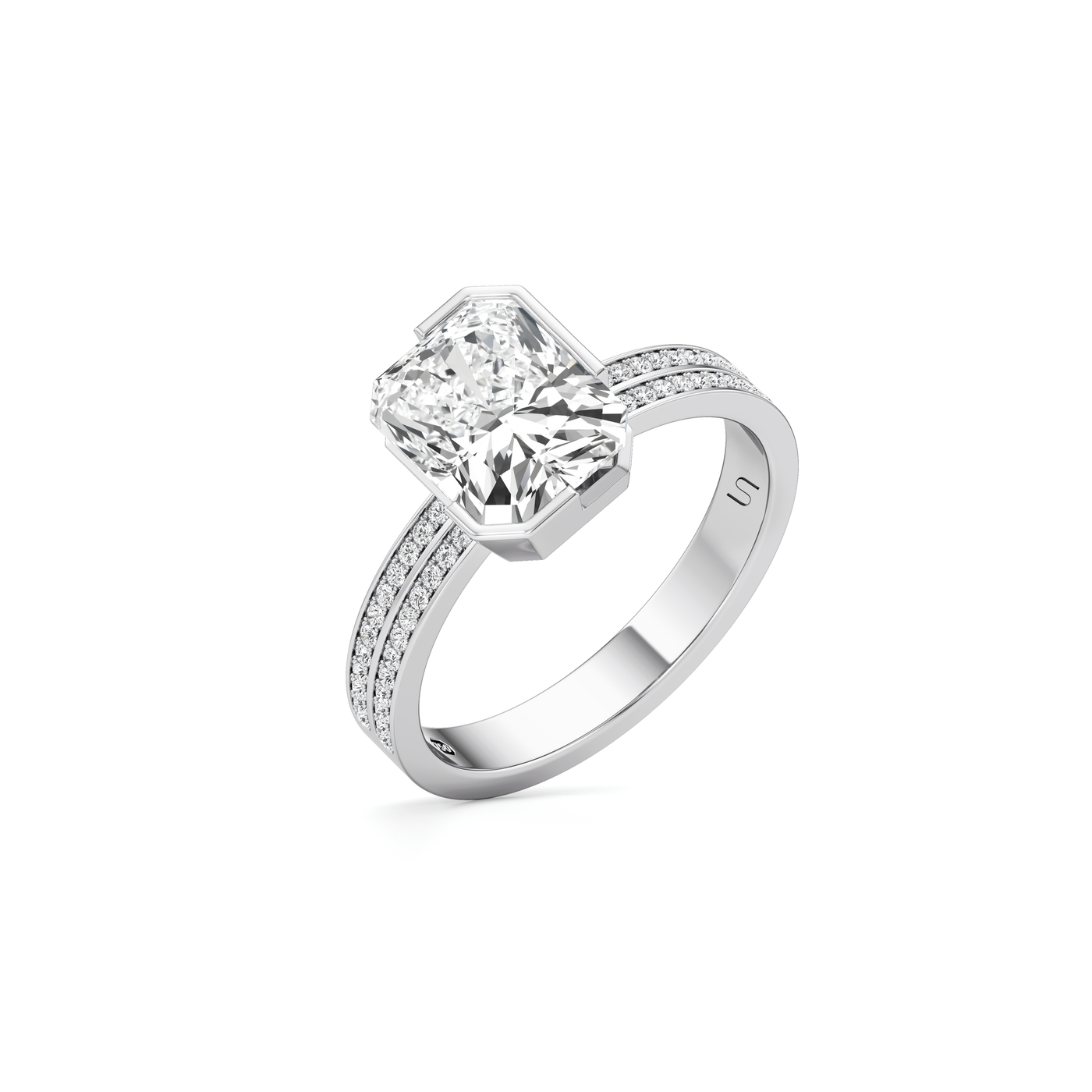 Meta Diamond Radiant Solitaire Double Pavé Ring