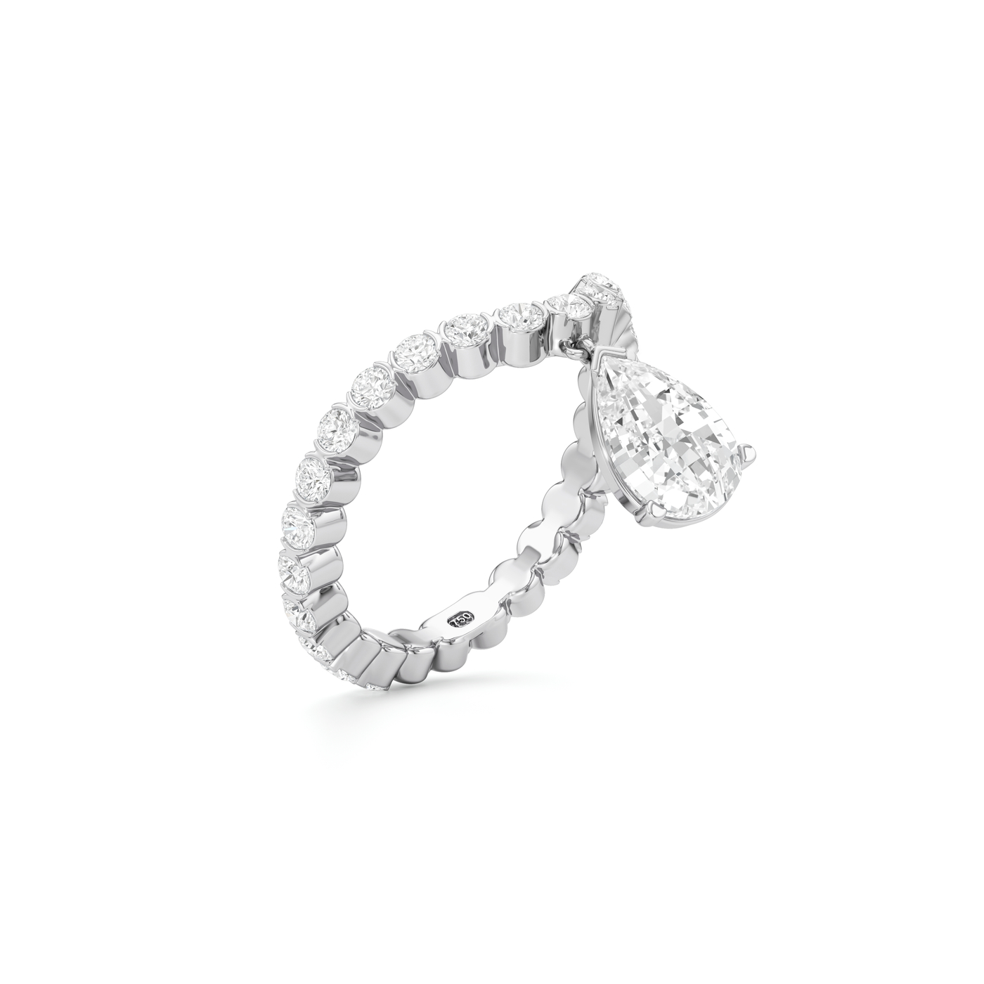 The Tear Diamond Curve Ring celebrates the purest form of joy through the signature Tear-cut diamond suspended gracefully from a gold band set with pavé diamonds. Handcrafted to reveal 38 stunning facets, the Tear-cut diamond captures the natural weightlessness and curvature of a falling drop to reflect the purity of emotion. All Unsaid jewels are handcrafted from lab-grown diamonds and 18K recycled gold. Powered by renewable energy, our methods and materials are certified carbon neutral.