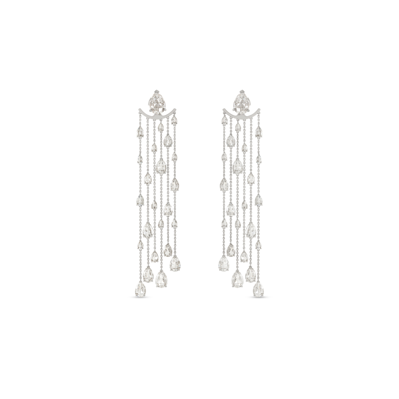 The Tear Waterfall Versatile Earrings showcase a cascading effect of slender gold chains adorned with multiple signature Tear-cut diamonds, each showcasing 38 sparkling facets. Set in 18K recycled gold, the earrings fall gracefully, evoking the brilliance of a tear suspended in time. The Tear diamond at the top can also be worn separately as earstuds. All Unsaid jewels are handcrafted from lab-grown diamonds and 18K recycled gold. Powered by renewable energy, our methods and materials are certified carbon neutral.