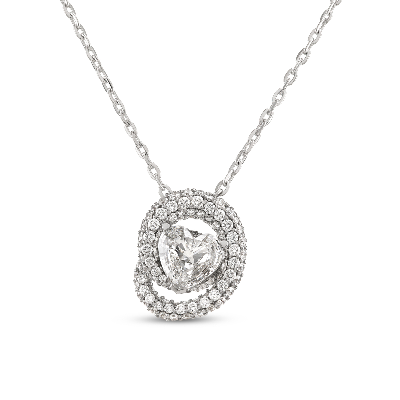 The Whirlwind Diamond Heart Pavé Pendant traces the upward swirl of a whirlwind, capturing the beauty found in chaos. Hundreds of diamonds are meticulously set by hand in intricate micro-pavé, creating a luminous play of light that shifts with every angle. The patented Whirlwind Heart cut evokes the heart that races in a whirlwind, forming a dynamic expression of movement and emotion. All Unsaid jewels are handcrafted from lab-grown diamonds and 18K recycled gold. Powered by renewable energy, our methods and materials are certified carbon neutral.